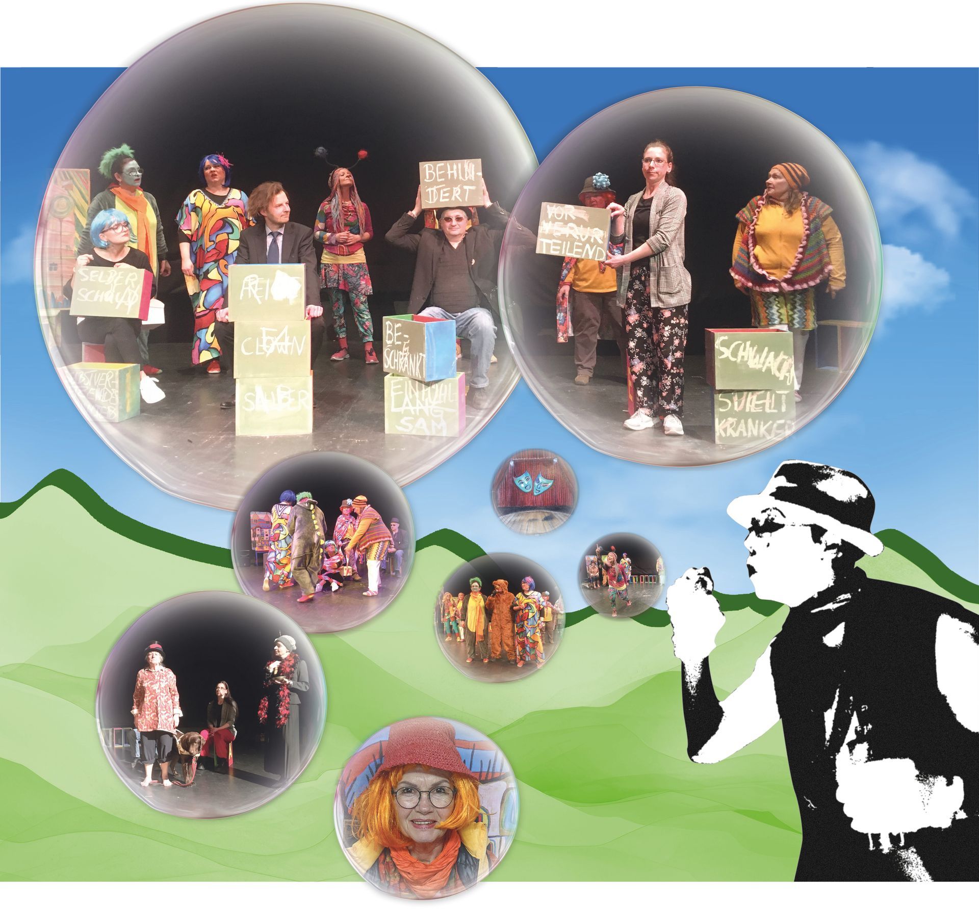 - Aktive Unterstützung (Hilfe bei den Proben, Requisiten Kostüme und Bühne mitgestalten, soufflieren, Förderanträge schreiben etc.) bitte auch bei Jenny Wölk melden s.o.